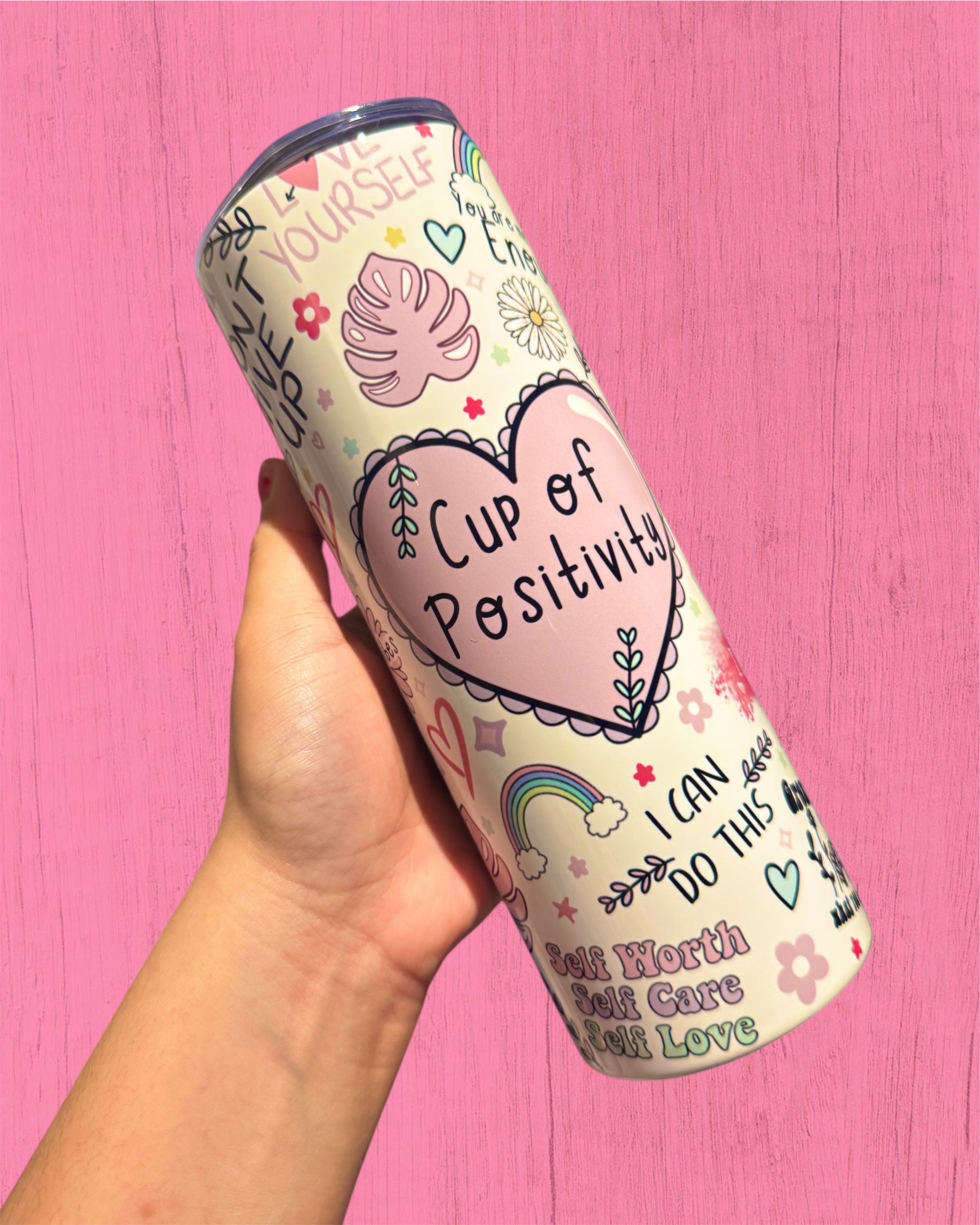 Start your day with a dose of good vibes! The Cup of Positivity 20oz Tumbler is a reminder to stay positive, no matter where life takes you. With its cheerful design and uplifting message, this tumbler keeps your beverages hot or cold while bringing a smile to your face. Whether you're sipping coffee, water, or tea, this tumbler will keep you fueled and focused on the bright side of things.