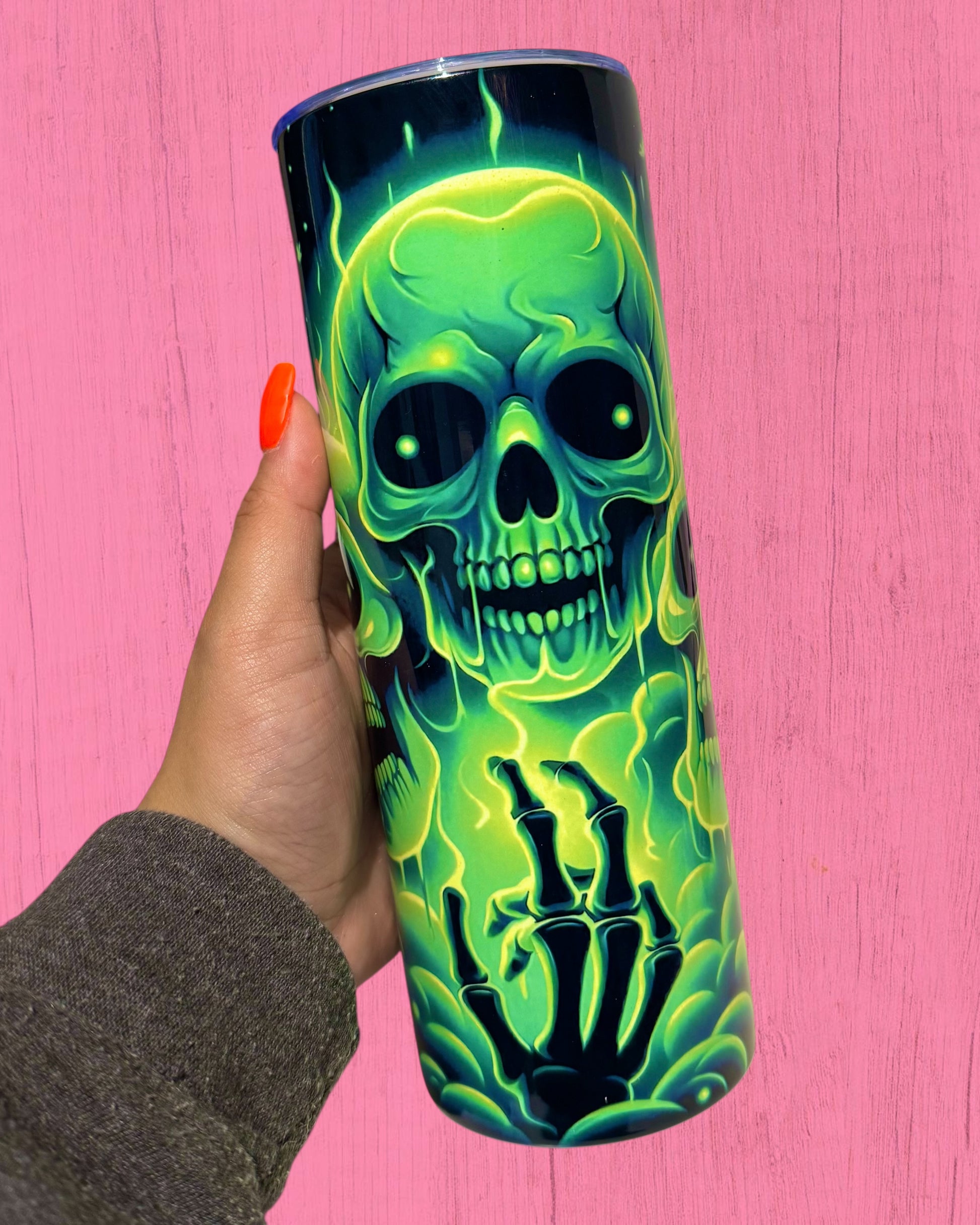 Perfect for yourself or as a gift for the skull lover in your life, the Green Skulls 20oz Tumbler combines function and flair like no other.