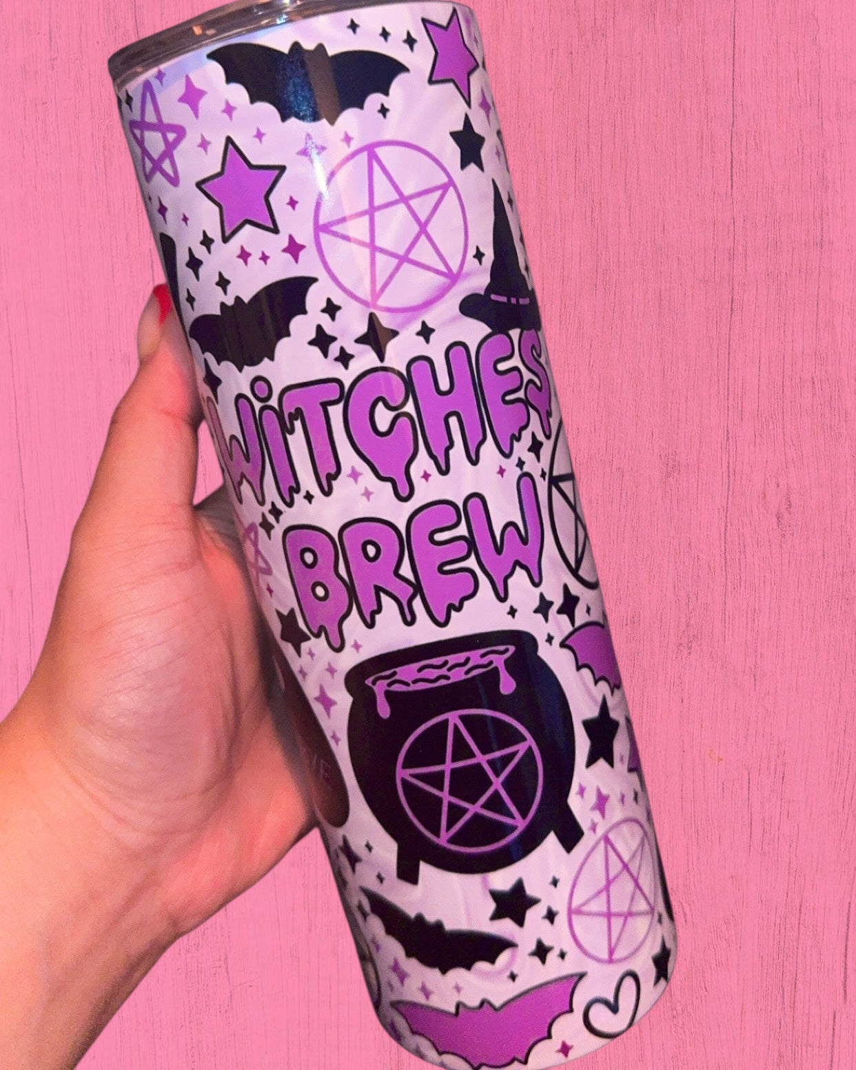Unleash your magical side with the Witches Brew 20oz Tumbler, designed to hold your favourite beverages in enchanting style. This bewitching tumbler features a sleek, modern design with a mystical touch, perfect for those who love a little magic in their daily routine. Whether you're sipping on a potion (or your morning coffee), the Witches Brew tumbler is the ideal companion for any witch or wizard on the go.